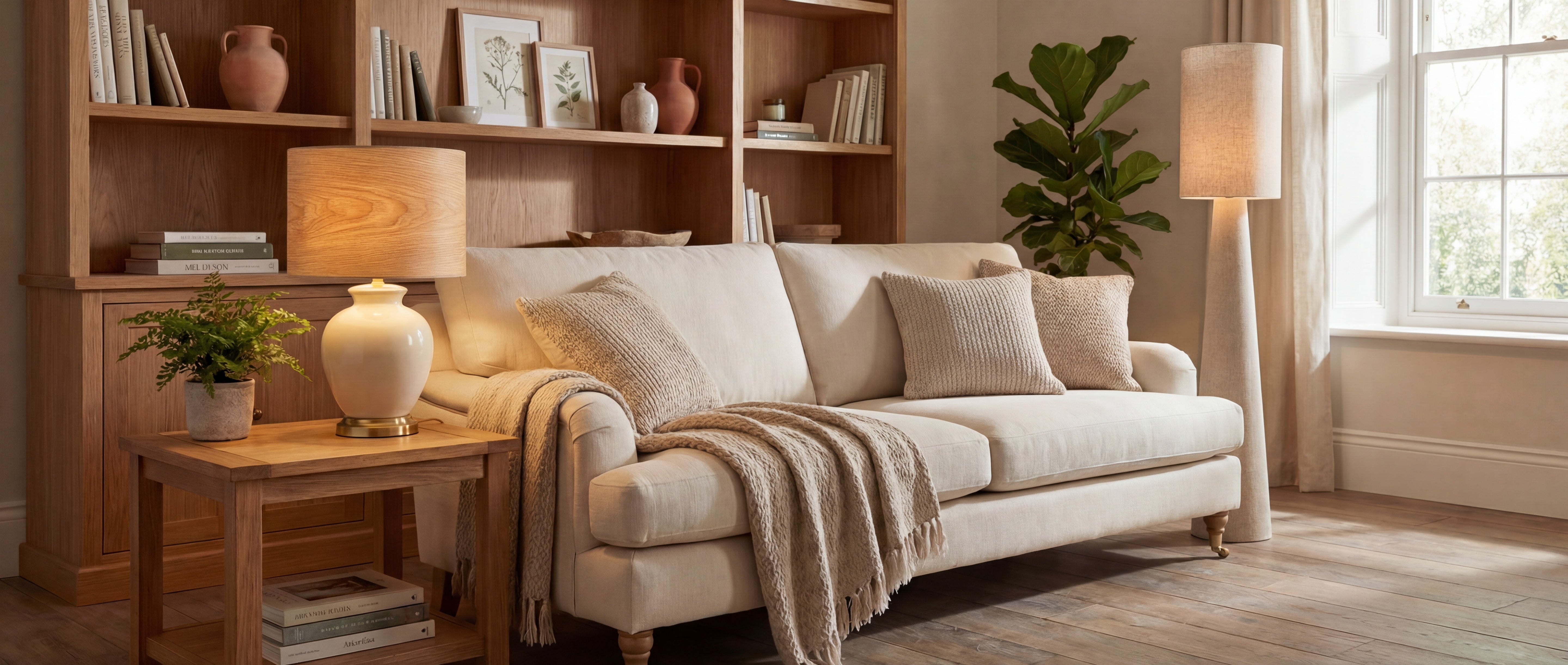 Modern Natural Oatmeal Linen Floor Lamp with Fabric Shade and Base